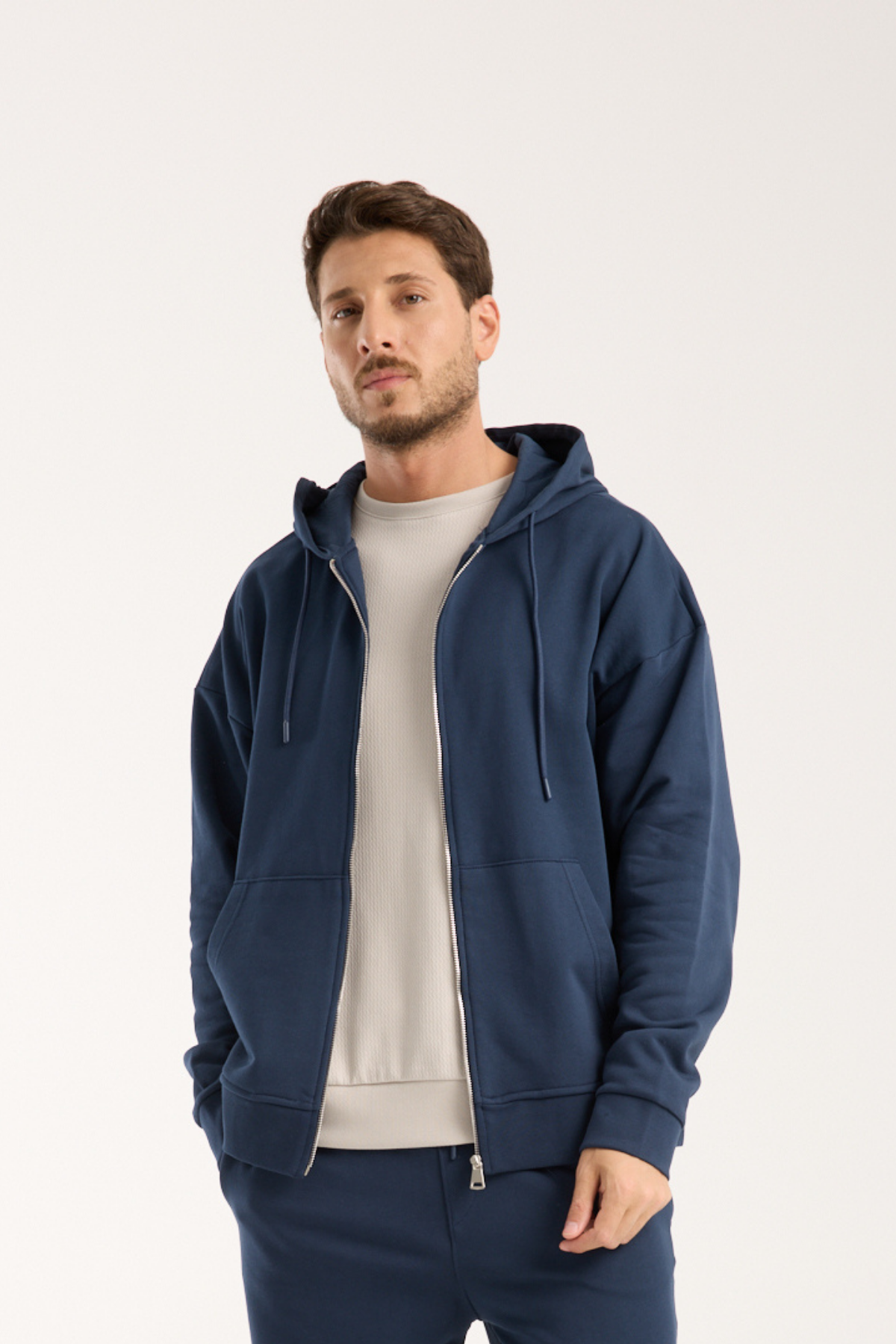 %100 Pamuk Erkek Oversize Fermuarlı Kapüşonlu Sweatshirt | Bol Kesim Hoodie (51106-01)